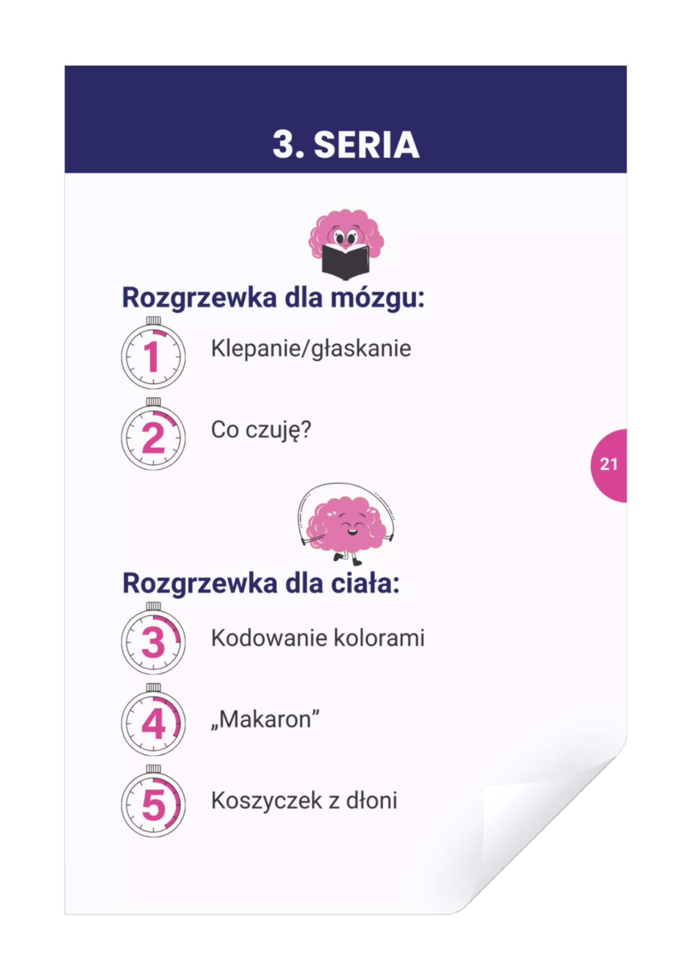 ✅ Gotowe zestawy krótkich, kilkuminutowych ćwiczeń (2 dla mózgu + 3 dla ciała)